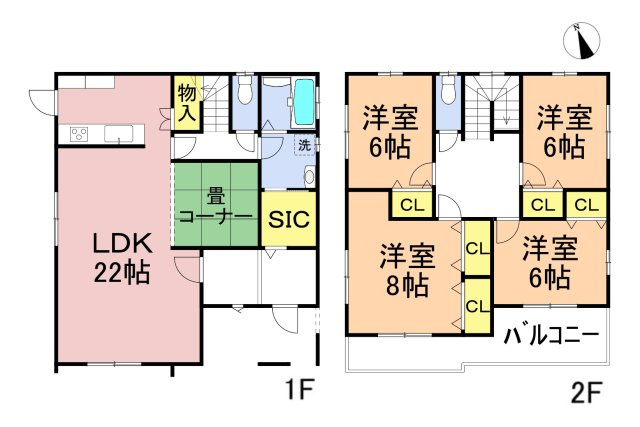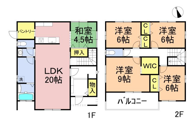 LDK 18.0帖/洋室 9.0帖/洋室 6.0帖/洋室 6.0帖/洋室 6.0帖 - 向き