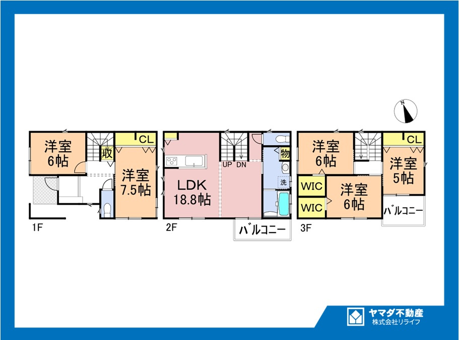 長期優良住宅 耐震等級3 名鉄今伊勢駅まで徒歩8分。近隣に商業施設もあり便利な立地です。長期優良住宅の3階建て5LDKで延床面積36坪超えの広々したお家です。